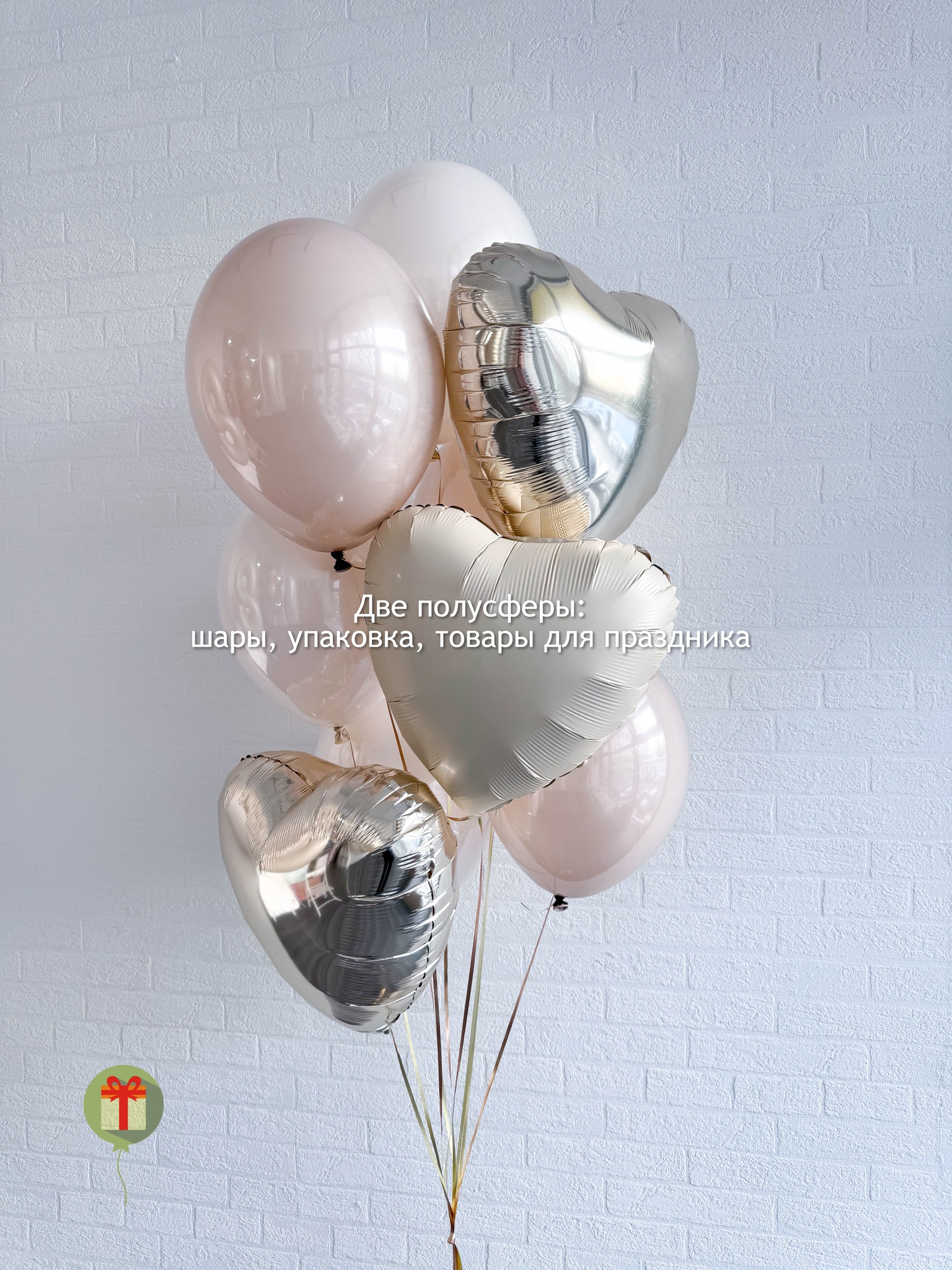 Фонтан из 10 шаров, 3 фольгированных сердца 45 см и 7 шаров пастель, грузик и пакет входят в стоимость.