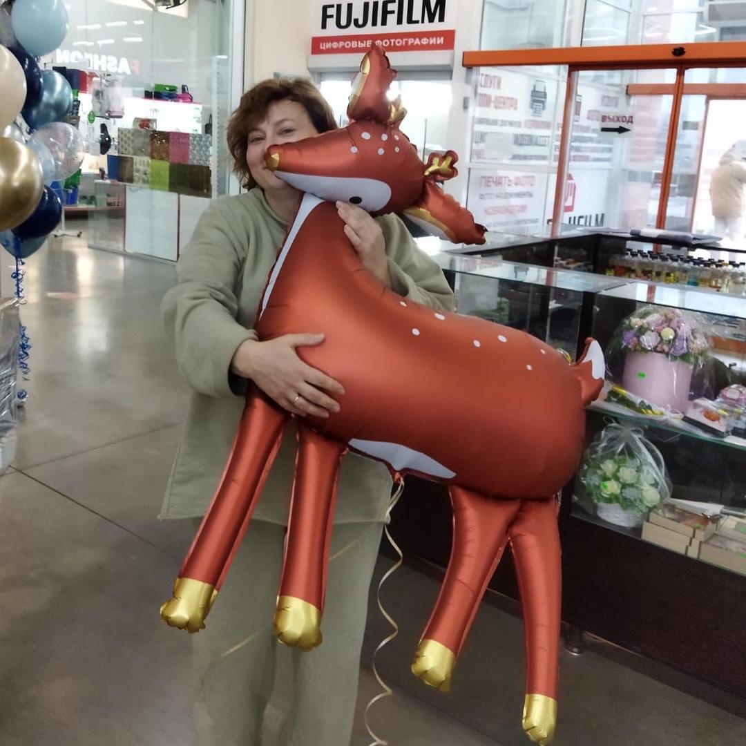 Олень коричневый от Пати Деко, надут гелием, грузик и пакет входят в стоимость