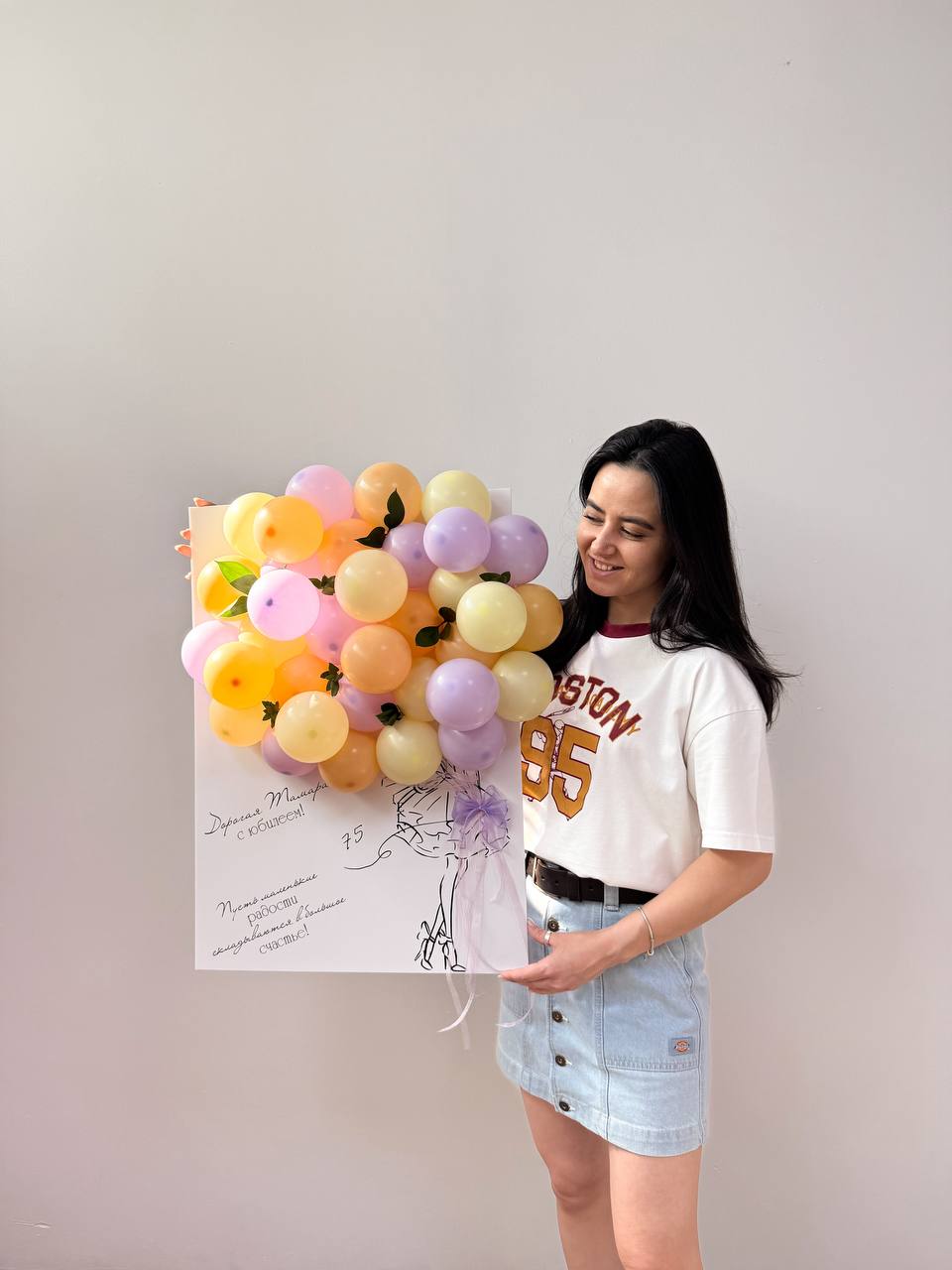 Открытка 50*70 см с красивыми шарами. Дополнена надписями-пожеланиями