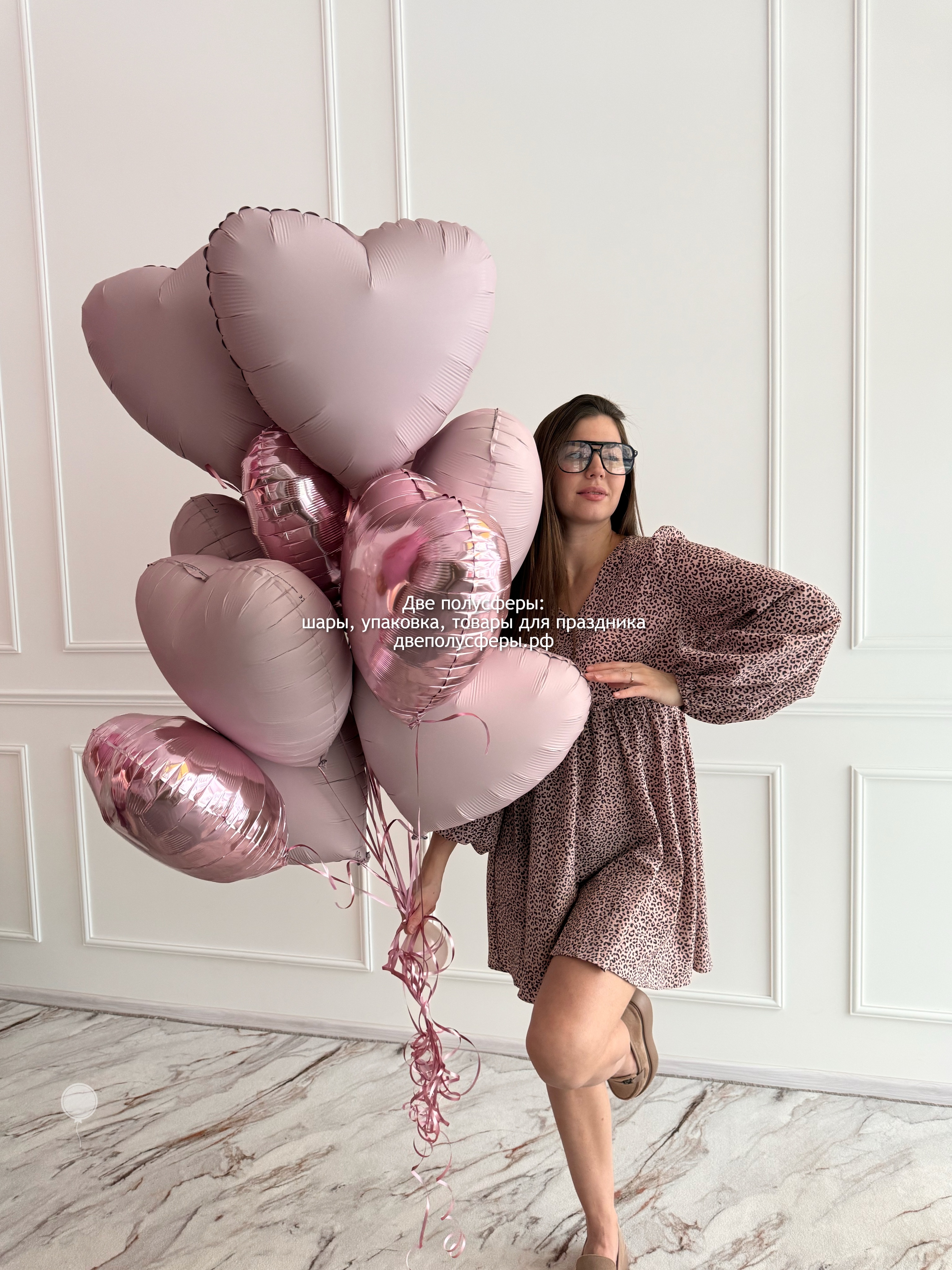 10 розовых сердец разных оттенков, груз и пакет