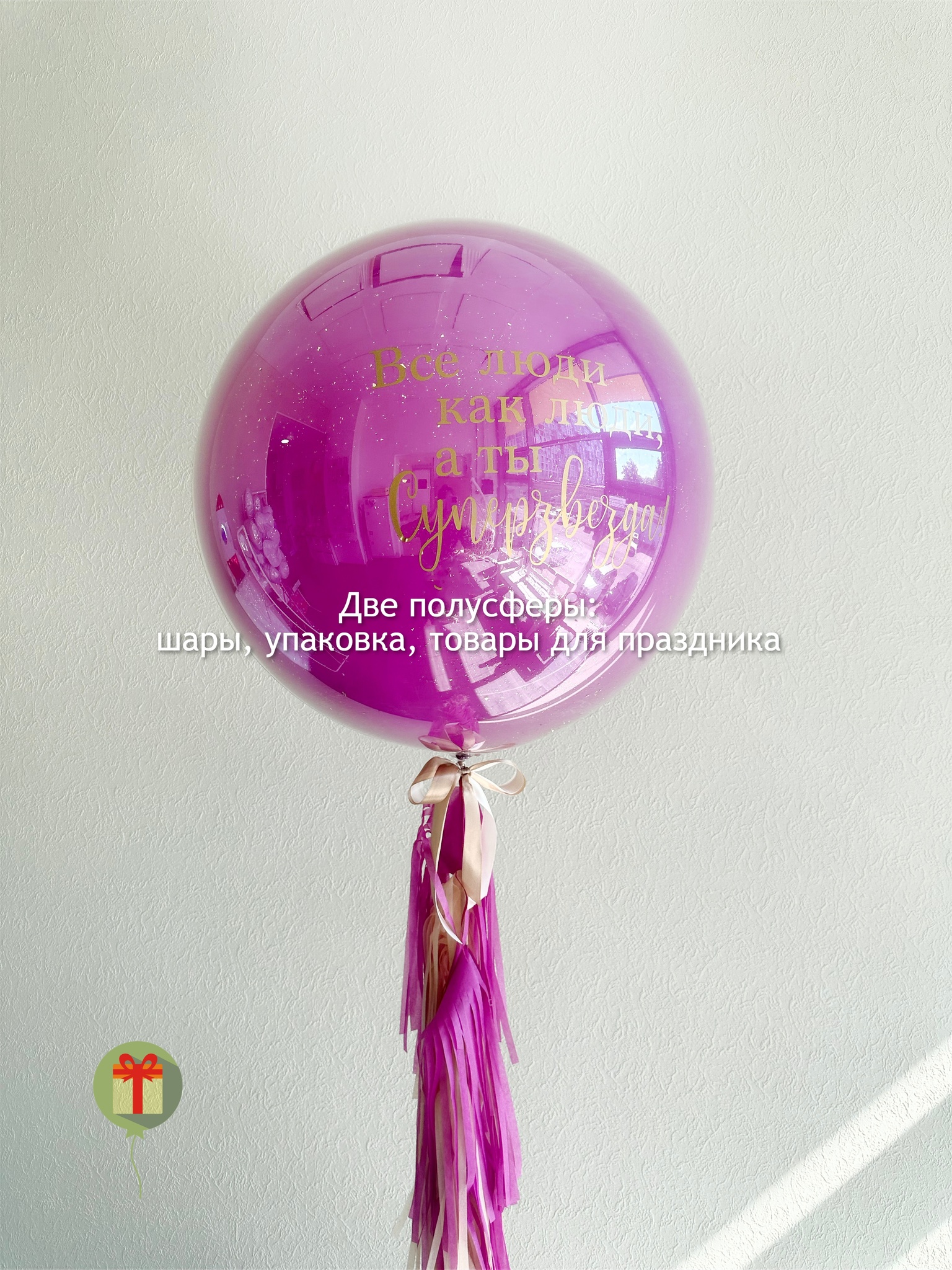Сфера дабл бабл 60 см+ надпись, декорированная пышным хвостом. Грузики и пакеты включены в стоимость.
