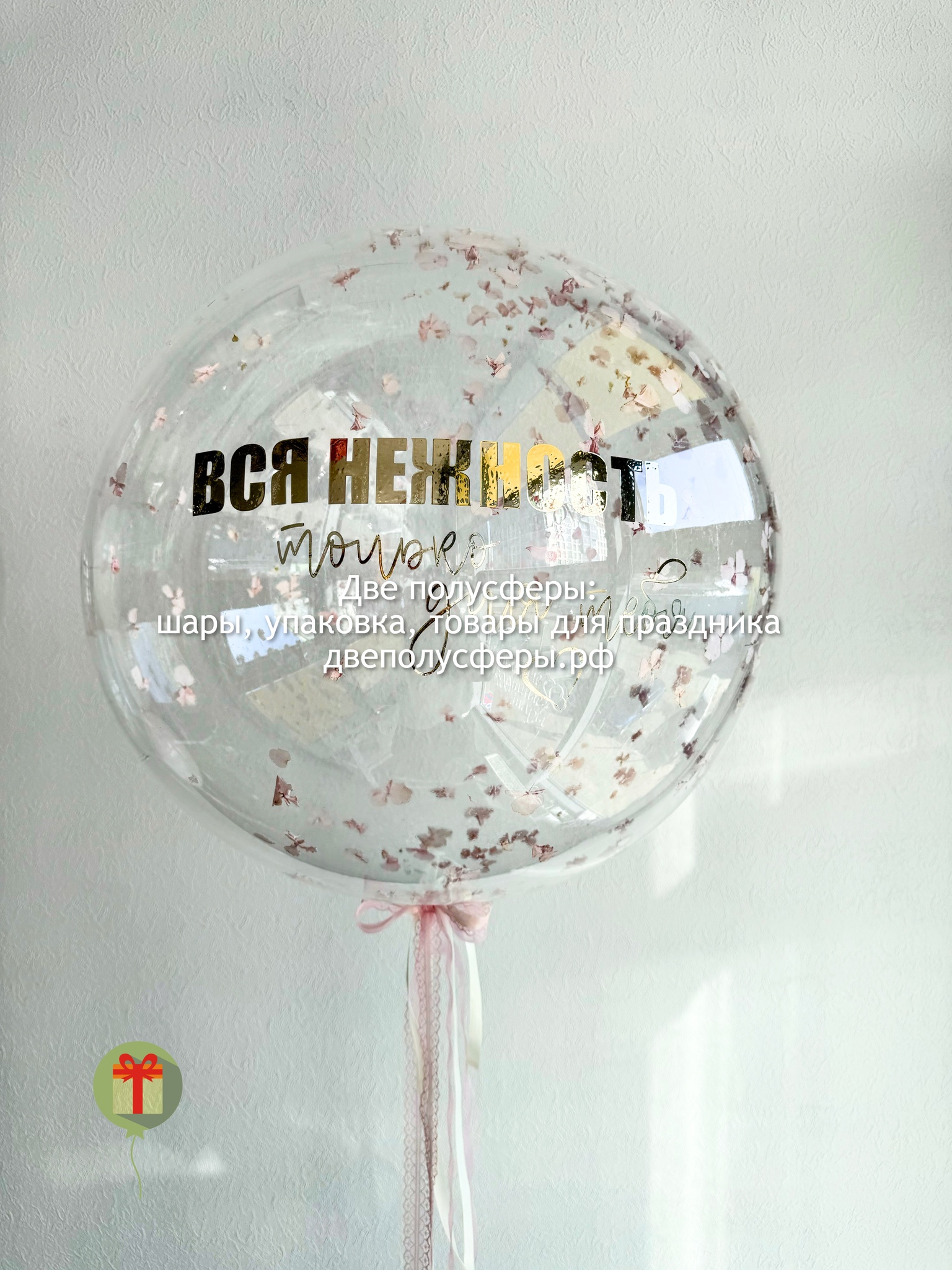 Сфера с конфетти 60 см+ надпись. Грузик и пакет включены в стоимость.