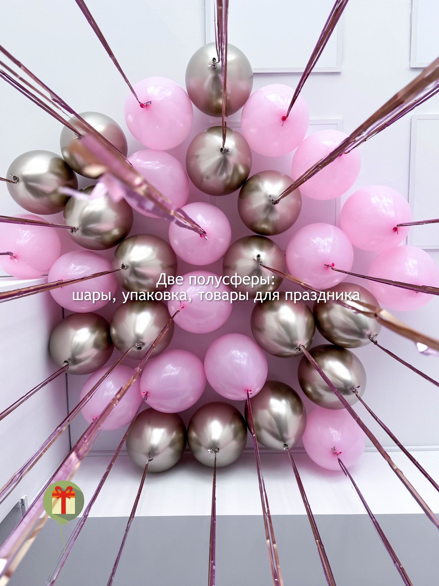 30 шаров под потолок, 15 шаров хром и 15 шаров пастель, пакет входит в стоимость