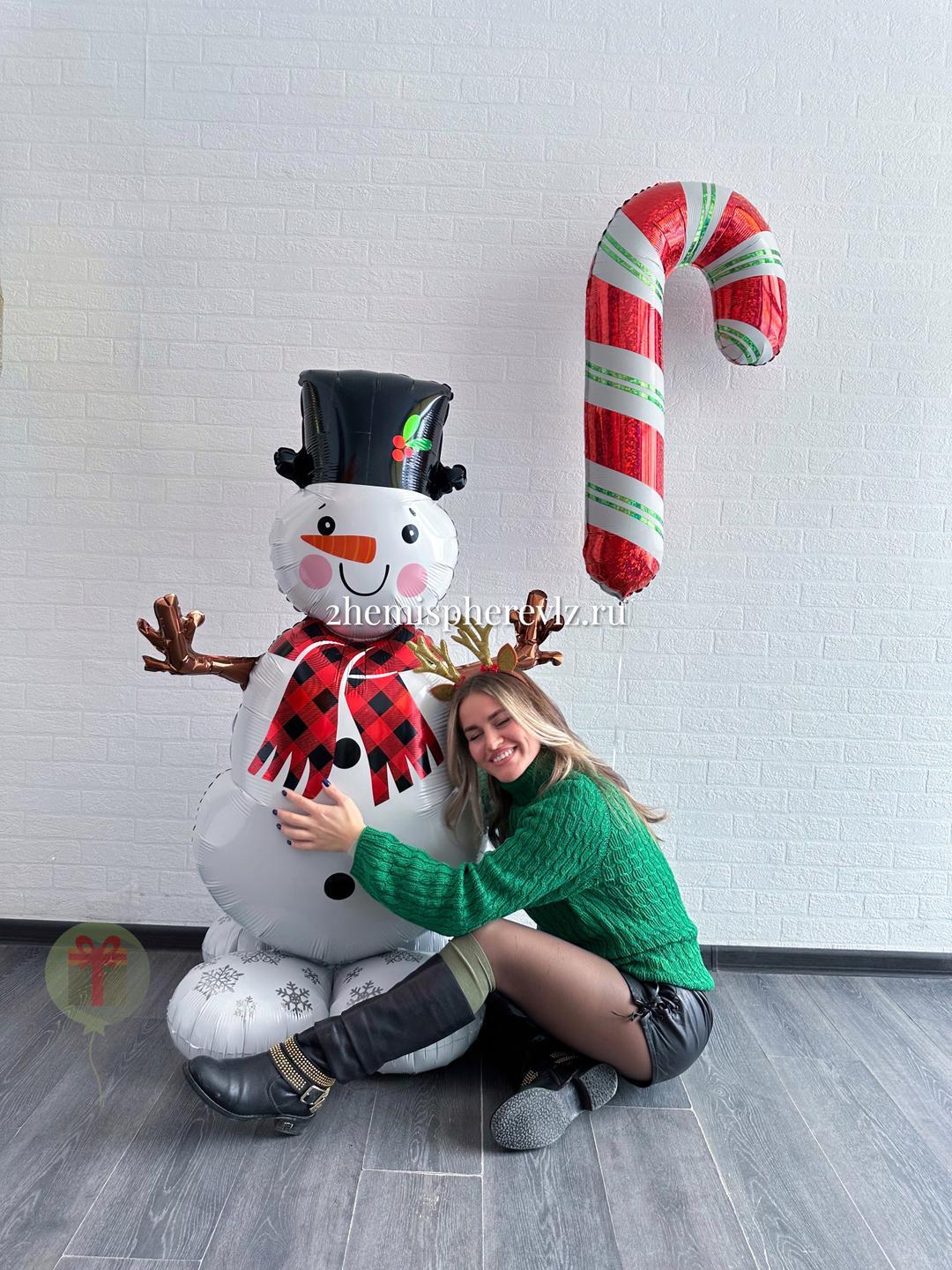 Стоячая фигура снеговика и леденец с гелием, грузик, пакет входят в стоимость
