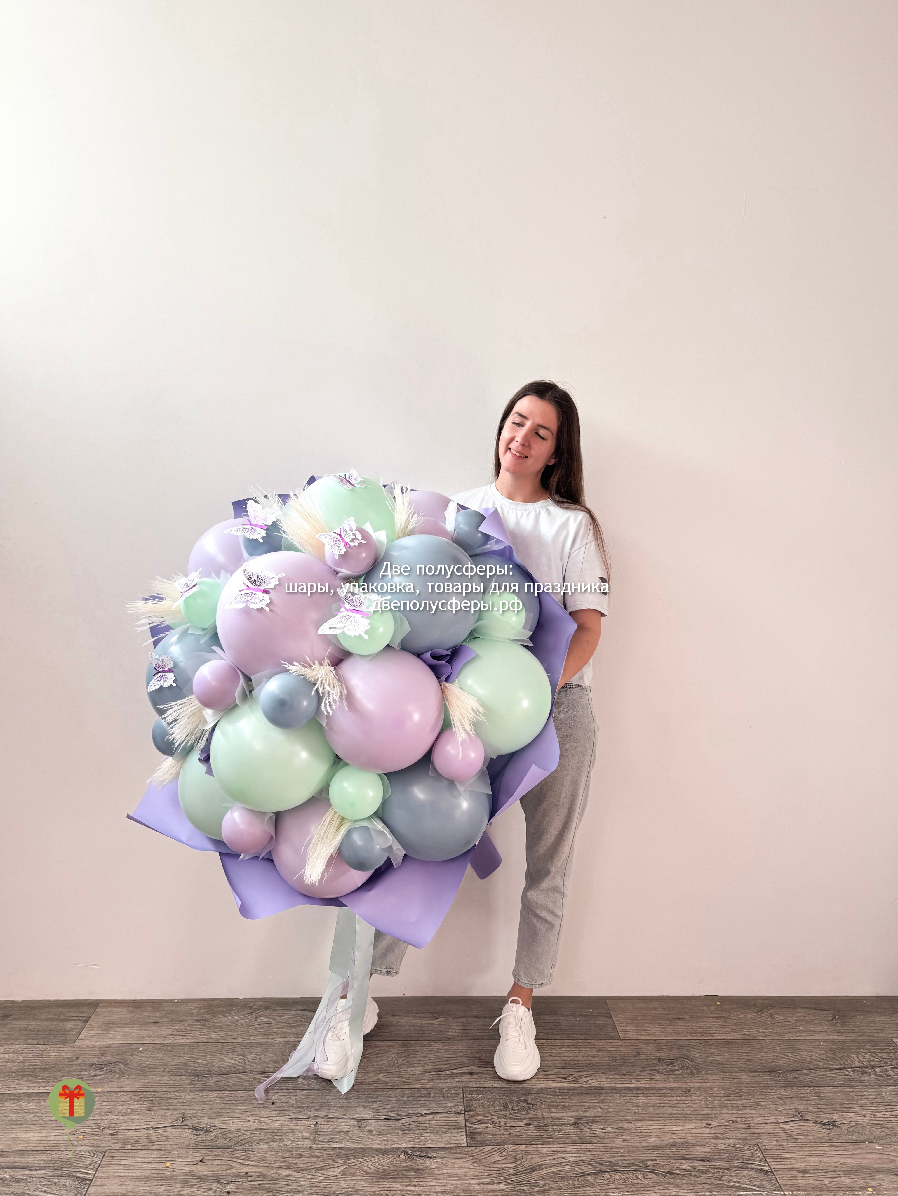 Огромный вау букет в размере XL в мятно-лавандово-розовой гамме