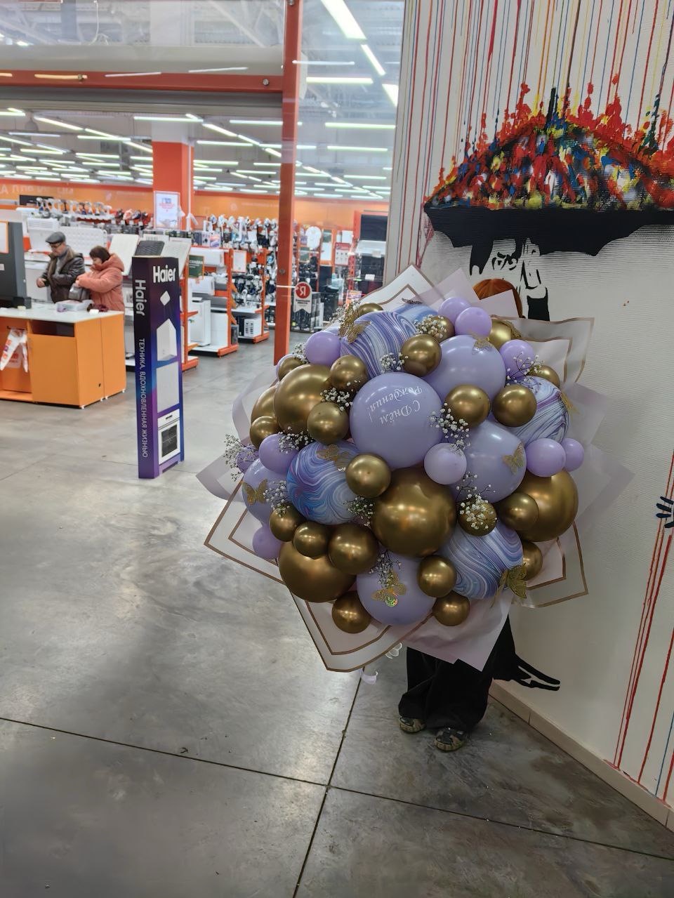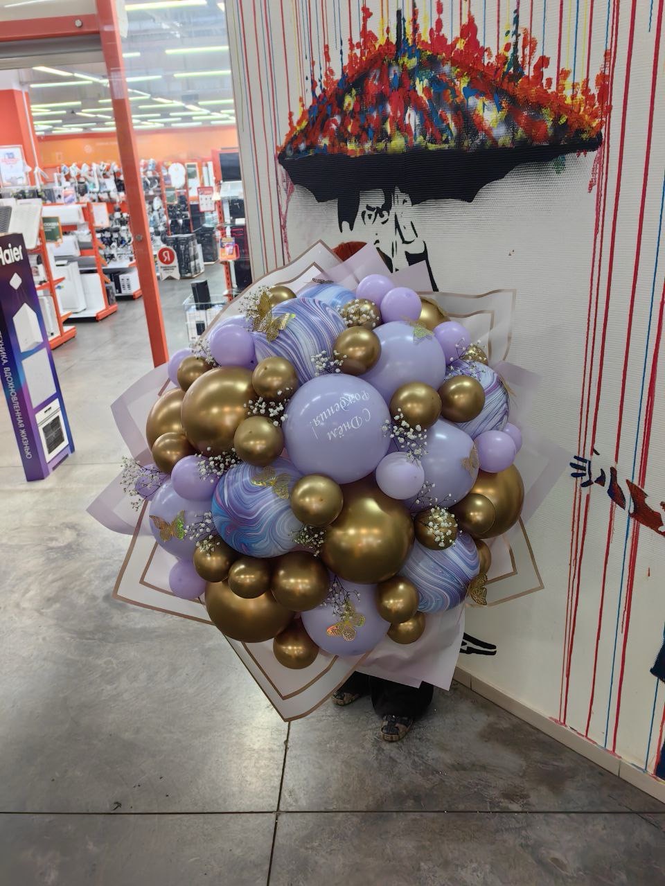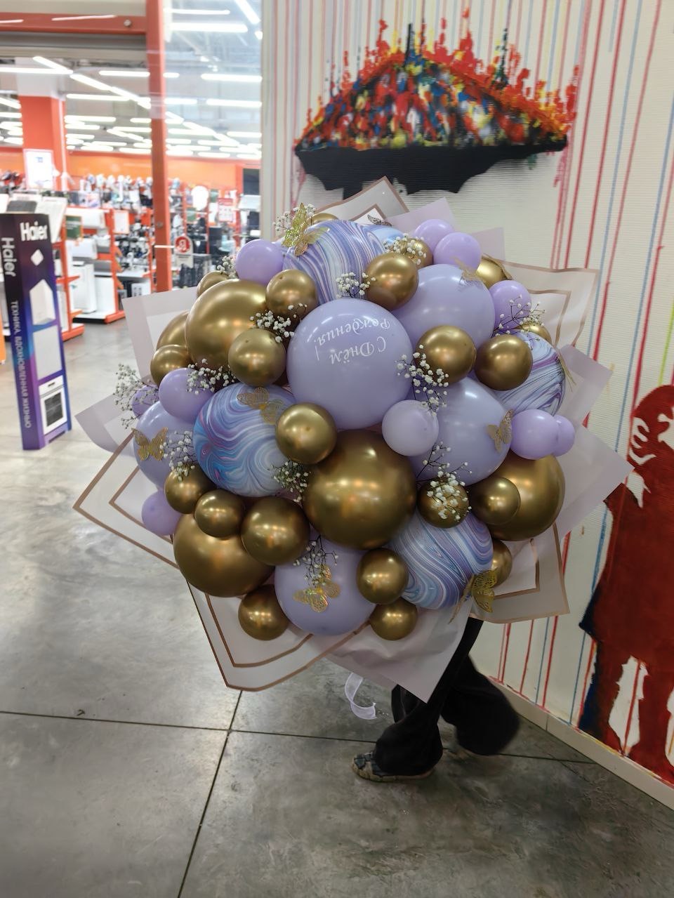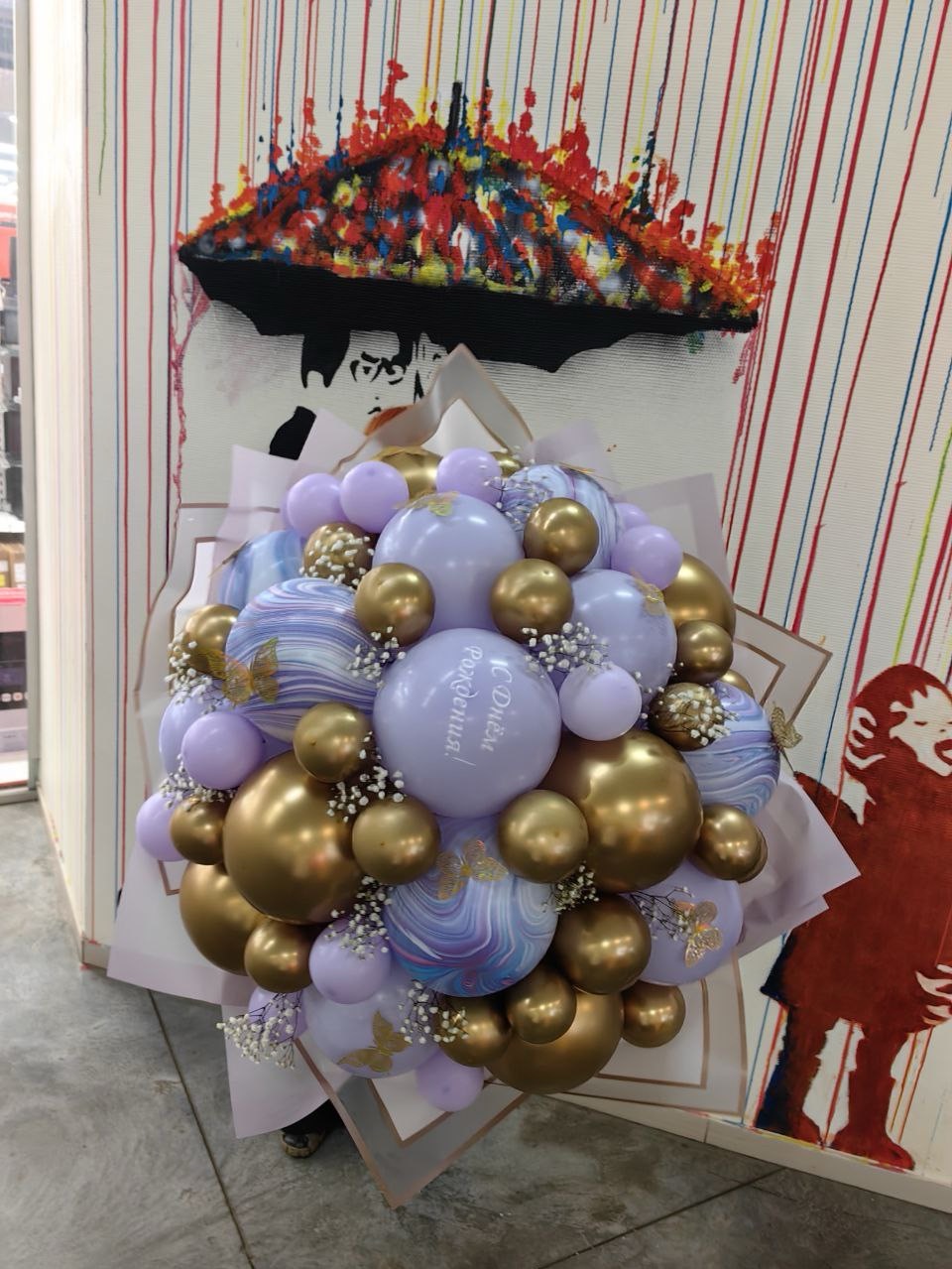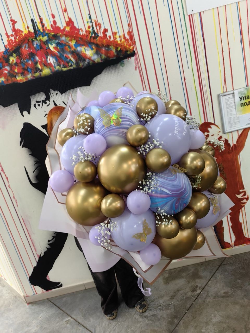 Огромный букет в сиренево-золотой гамме
