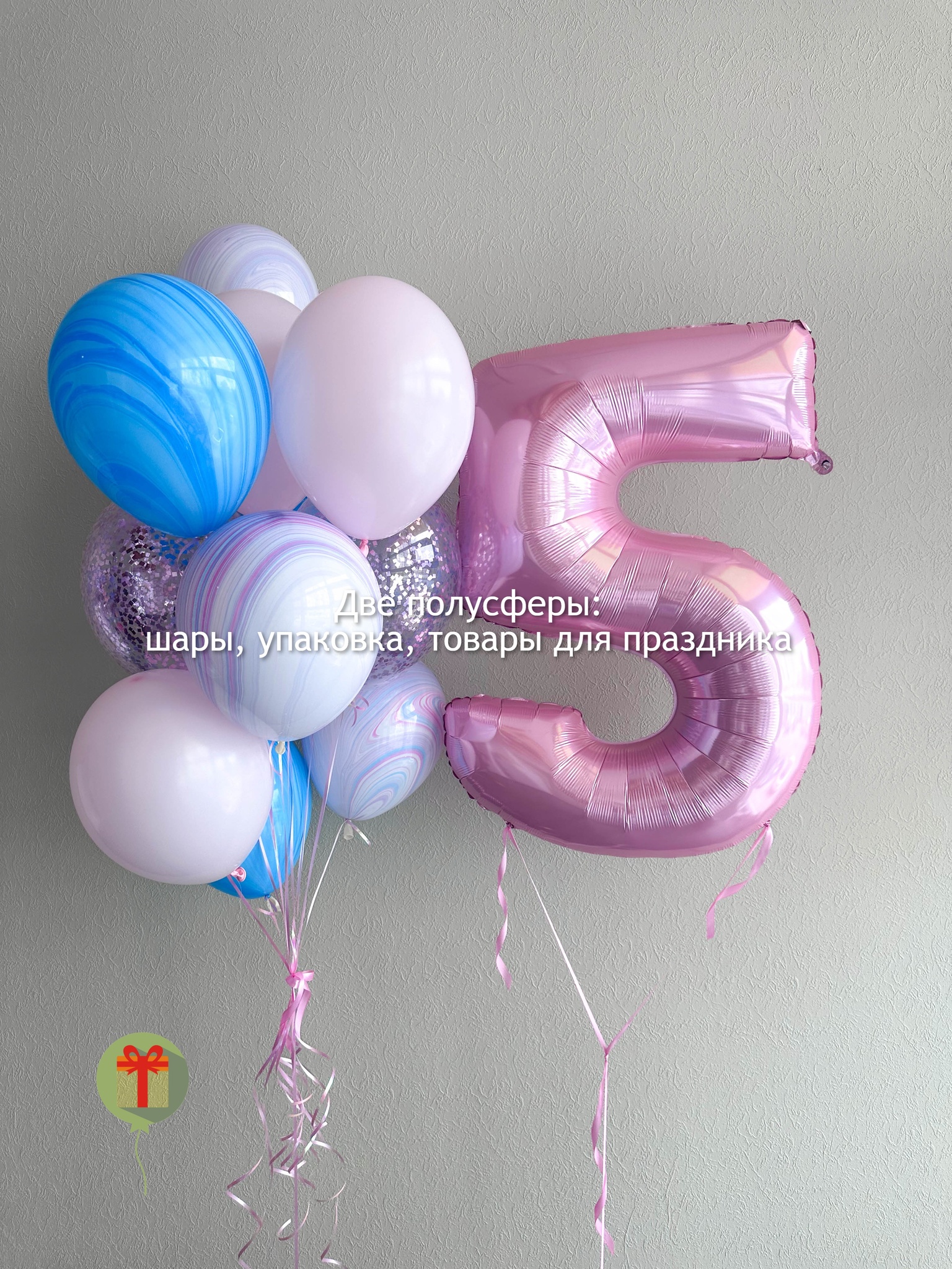 Набор с фольгированной цифрой 102 см и фонтаном из 10 шаров, 5 шаров агат, 2 шара с конфетти и 3 шара пастель, грузик и пакет входят в стоимость.